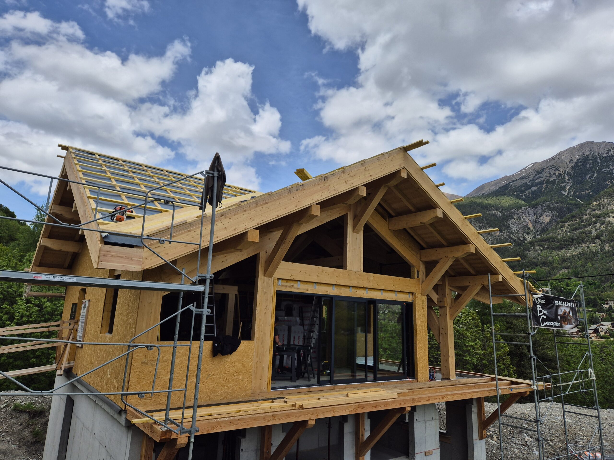 Pour ce chalet, nous avons réalisé la taille complète des éléments bois pour notre partenaire Alpes Bois Conception.
